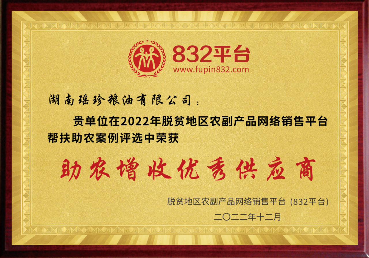 在2022年(nián)和(hé)2023年(nián),瑤珍糧油分(fēn)别獲得(de)“助農(nóng)增收優秀供應商”和(hé)“規範經營優秀供應商”。